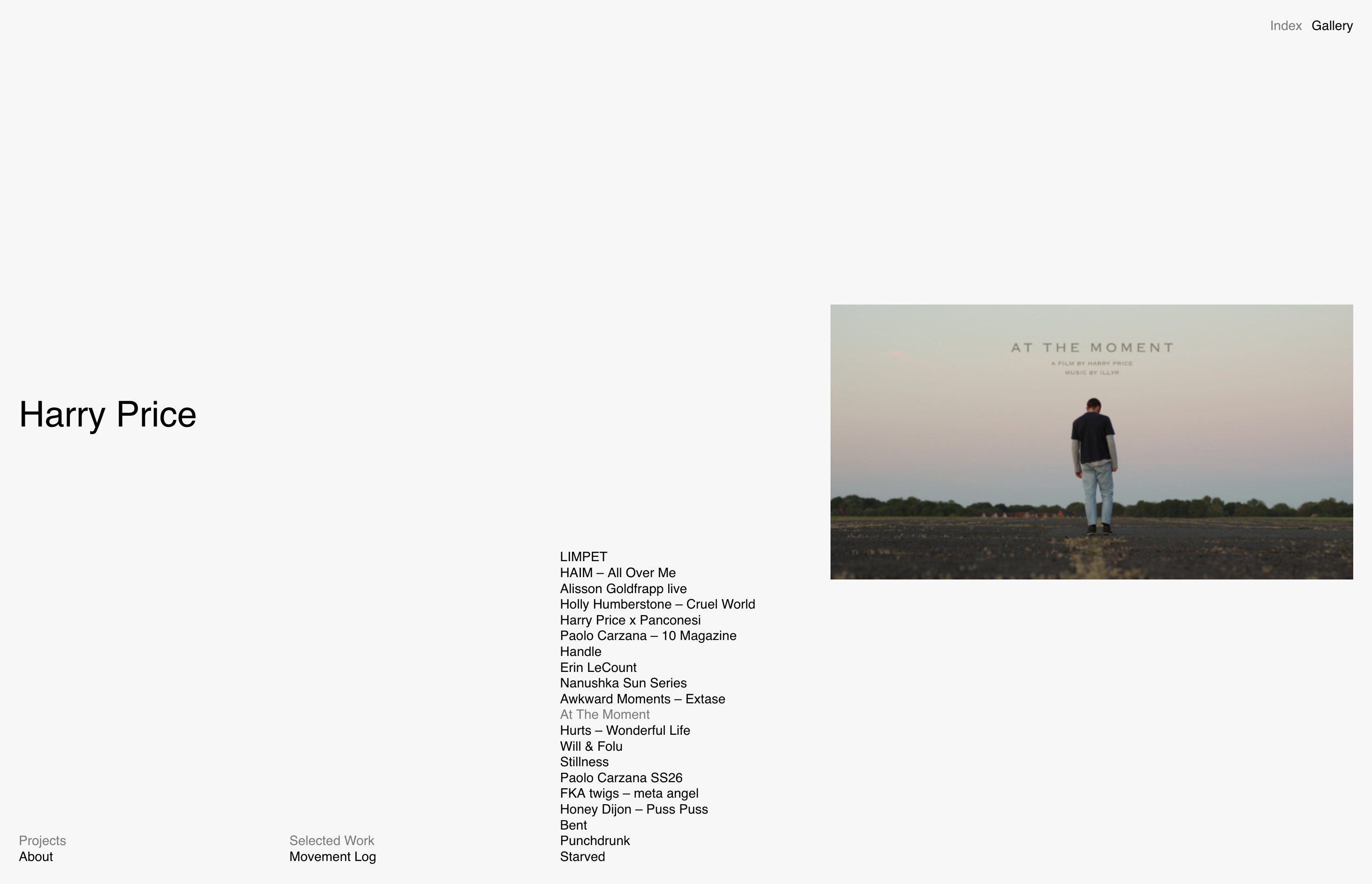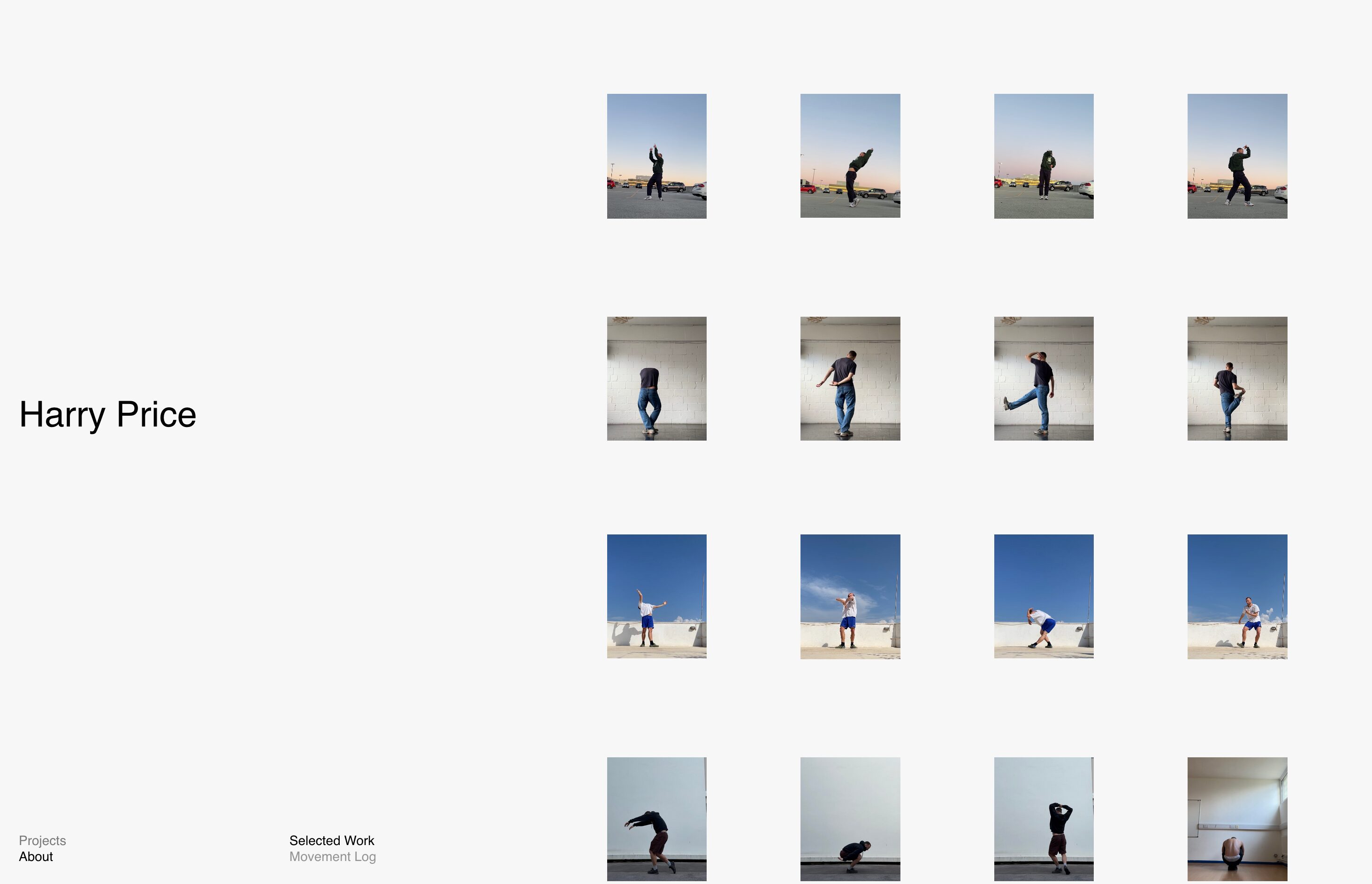 Designed and developed for Harry Price Projects, the website is structured as a straightforward, content-led platform for presenting work across film, fashion, and performance. The design prioritises direct access to projects, with a simple navigation system and minimal interface elements that allow users to move quickly between entries. Projects are presented through a clear sequence of video and imagery, supported by concise text and consistent layout rules. Typography and spacing are kept restrained to maintain readability and focus, resulting in a practical and efficient structure that supports regular updates and a growing body of work without adding unnecessary complexity.